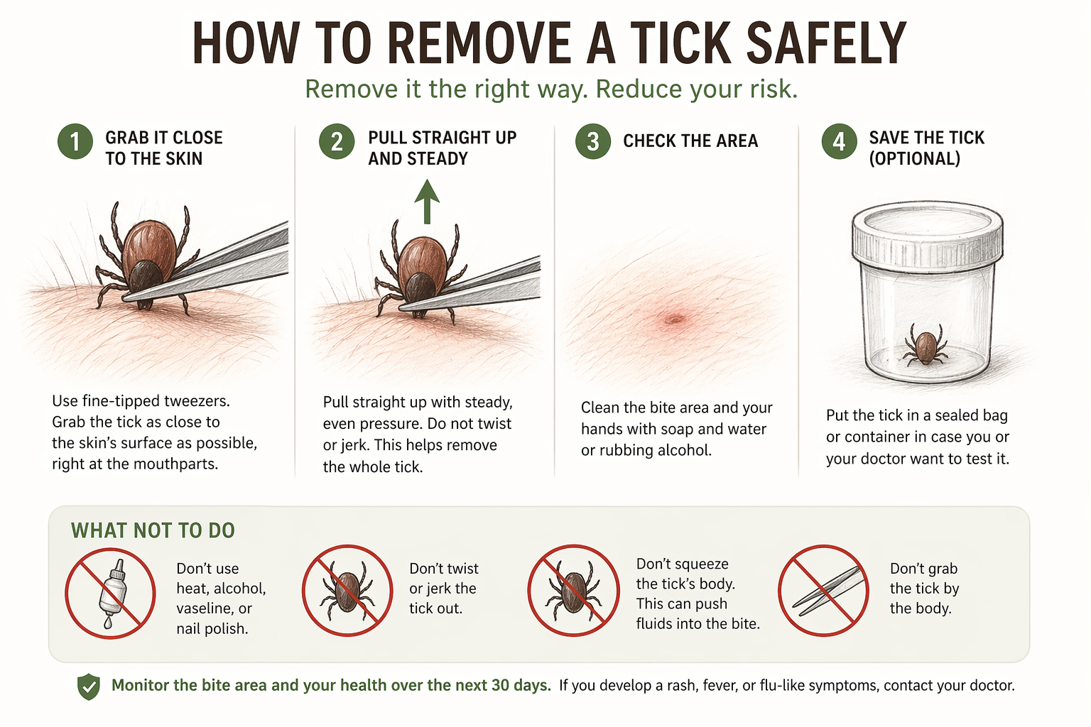 Follow these simple steps to safely remove a tick and reduce risk of infection.
