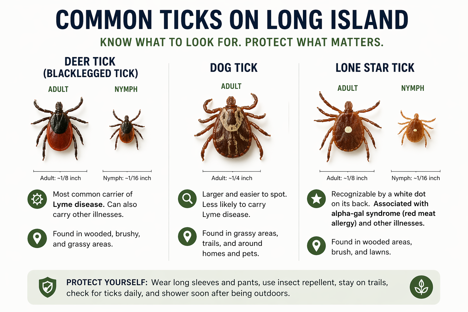 Use this guide to identify common ticks found on Long Island and understand the risks they carry.